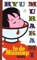 Ryu Murakami - geen familie van Haruki - is naast schrijver ook filmmaker, o.a. als auteur van de horrorfilm Audition, waarin een man, naakt en niet gehinderd door het verlies van zijn tong, een oor, twee voeten en drie vingers, braaksel drinkt uit een hondenbakje. Vriend Ryu schuwt met andere woorden de gewelddadige en/of smakeloze beelden niet. Ook in In de misosoep zit er één scène waarin een vijftal pleziermeisjes en toevallige aanwezigen worden omgebracht. 'Met de tampon aan zijn rechterhand bengelend en het oor in zijn linker, omhelsde hij de zanger alsof de man een geliefde was, en draaide hem de nek om.' Een zin waarvan ik nooit gedacht had die nog te zullen lezen.